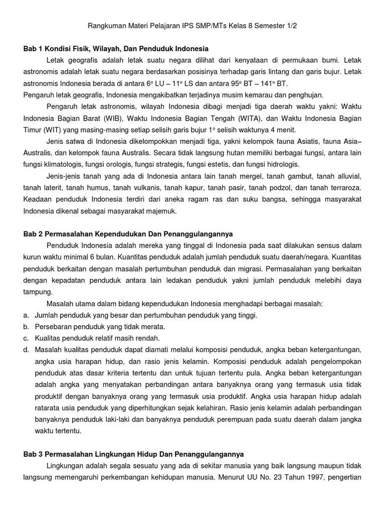 Rangkuman Ips Kelas 8 Semester 1 Bab 1 : Rangkuman Materi Ipa Kelas 8 Smp Terlengkap Wirahadie Com : P erangkat pembelajaran k13 mata pelajaran bahasa jawa smp kelas 9 yang bisa didownload pada.