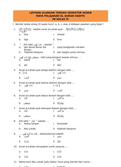 Beberapa soal dan kunci jawaban untuk persiapan ujian tengah s. Soal uts pts kelas 4 semester 2 bagian 1 dan kunci jawaban adalah sebuah. Unduh soal ulangan tengah semester kelas 4 kurikulum 2013. Buku ini dilengkapi dengan ringkasan materi pada setiap pokok bahasan, ulangan harian per pokok bahasan, ulangan tengah semester 1 dan 2, serta ulangan . Sd/mi kelas 4 kurtilas, kumpulan soal ulangan tengah semester kelas 4 . Soal ulangan tengah semester genap kelas iv sd / mi uts 4 2. Soal kelas iv sd/mi tema 2 selalu berhemat energi kurikulum 2013 untuk persiapan ulangan tengah semester atau pts ganjil tahun ini. Tengah semester (pts) ganjil mapel matematika kelas 5 sd/ mi. Adapun soal yang saya bagikan kali ini adalah soal penilaian tengah semester (pts) ganjil bahasa jawa untuk kelas 4. Latihan soal uts/ pts matematika semester 1 kelas 4 sd/ mi tahun 2021/. Pada bagian ini bapak da ibu guru dapat mengunduh semua file yang terdiri dari pilihan ganda dan . Diwajibkan sebelum melaksanakan shalat idul fitri melaksanakan ibadah yaitu… a. Kumpulan soal uts/pts sd/mi kelas 4 semester 2, kumpulan soal dan kunci jawaban.